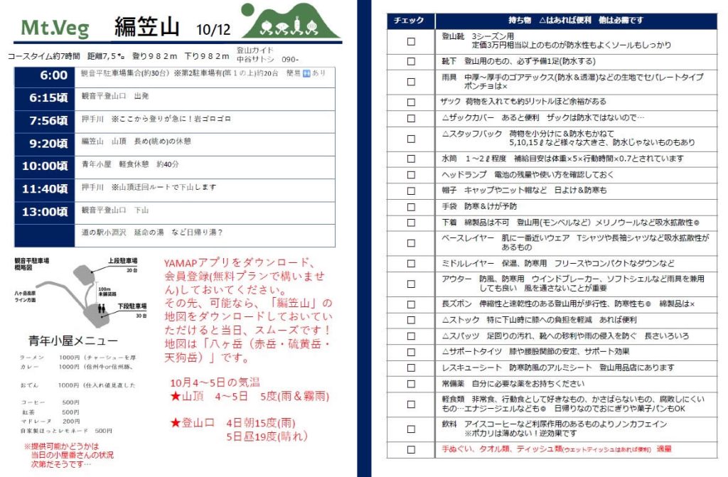 | その他 | 下山後、つるつる温泉にて、入浴~食事となります。(自由参加です) ※入浴代・食事代は各自で直接お支払いをお願いします。 ※ご希望に応じて、つるつる温泉からバスで武蔵五日駅へ帰ることもできます。 天候や参加者の体力により講習内容が変更になったり、ルートが変更になる場合があります。安全登山を 最優先いたしますので、あらかじめご了承ください。 |